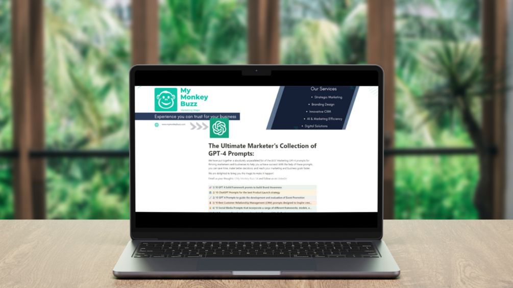 Whether you're crafting your first campaign or looking to infuse new life into your marketing efforts, My Monkey Buzz's digital marketing agency's prompts will fundamentally change your approach to marketing challenges and opportunities.